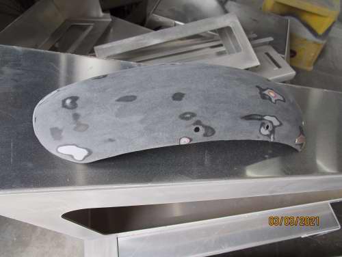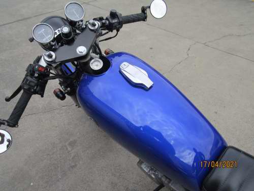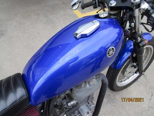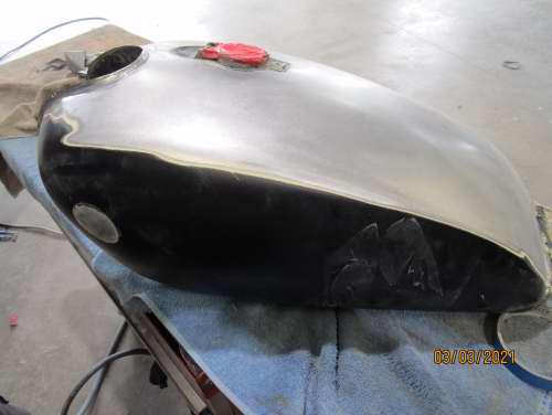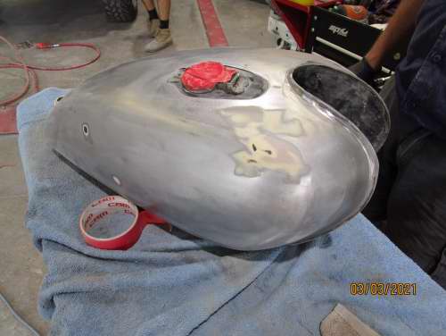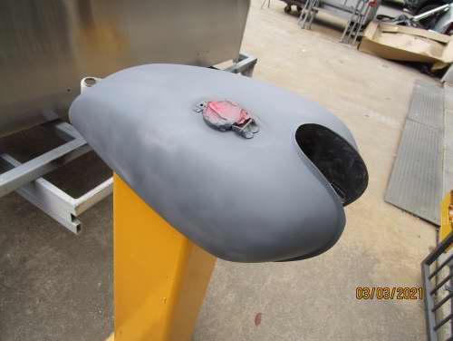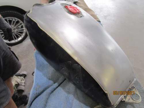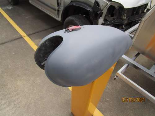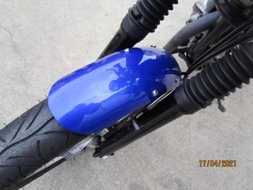 Fuel tank and mud guards stripped to metal, repaired and coloured.