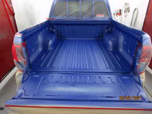 We use a brand called Raptor and it can be tinted to the colour of the vehicle as per images. You can also leave it black with no tint added.