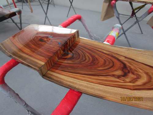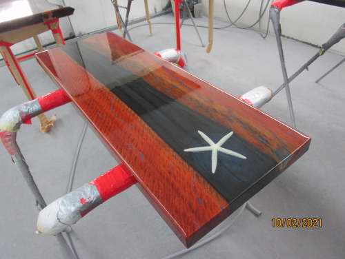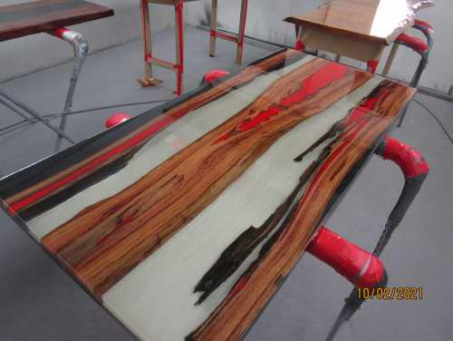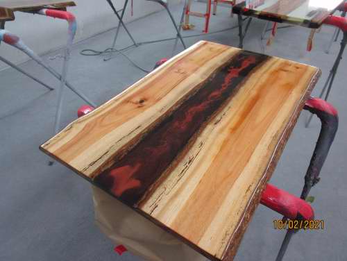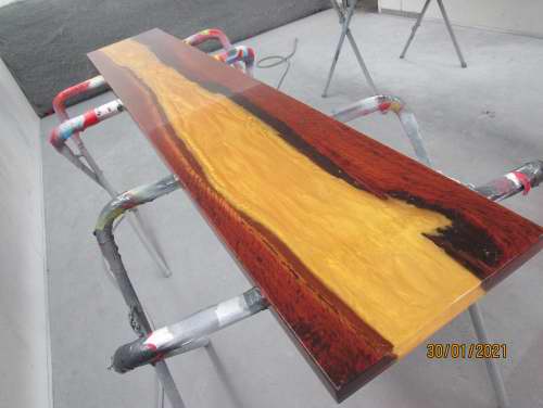 Timber slabs filled with resin & any colour you like.