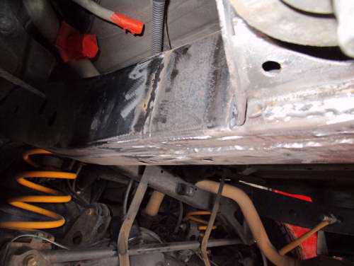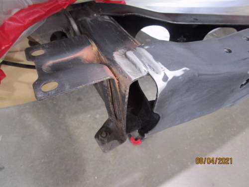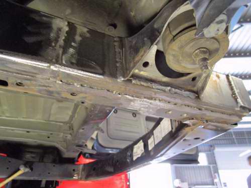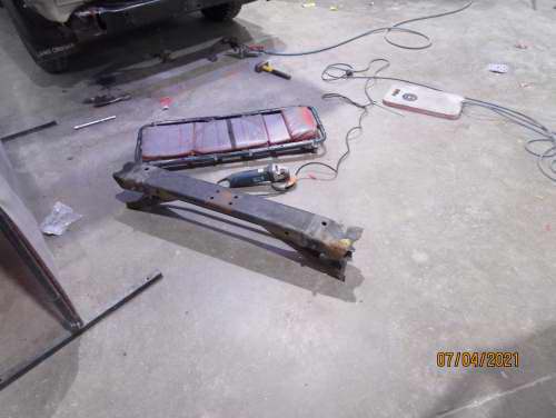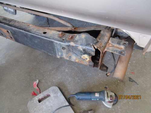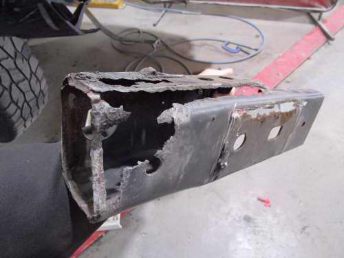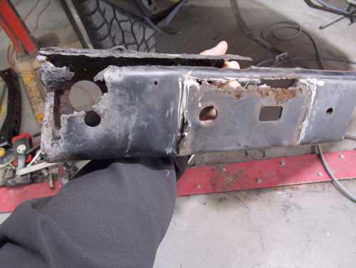 Rusted rear chassis x-member replacement.