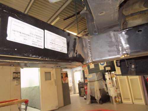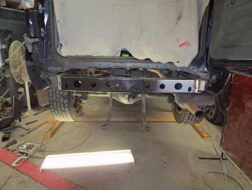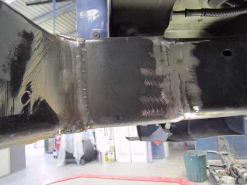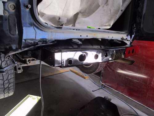 This vehicle needed rear x member replacement and rebuild on chassis rails.